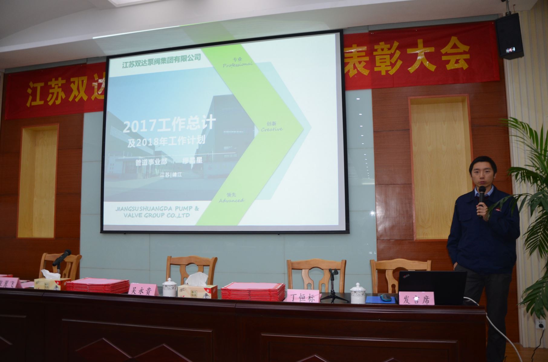 雙達(dá)公司董事長(zhǎng)吳永貴代表公司做了題為《與時(shí)俱進(jìn)、拼搏向上,團(tuán)結(jié)務(wù)實(shí)、爭(zhēng)創(chuàng)一流》的工作報(bào)告,報(bào)告全面、細(xì)致、深入地對(duì)2017年度公司各項(xiàng)工作取得的成績(jī)及存在的問題進(jìn)行了總結(jié),并結(jié)合公司的轉(zhuǎn)型升級(jí)情況,對(duì)2018年度公司主要工作目標(biāo)進(jìn)行了解讀。號(hào)召全體員工團(tuán)結(jié)一致,振作精神,為全面完成2018年度公司宏偉目標(biāo)而努力奮進(jìn)!